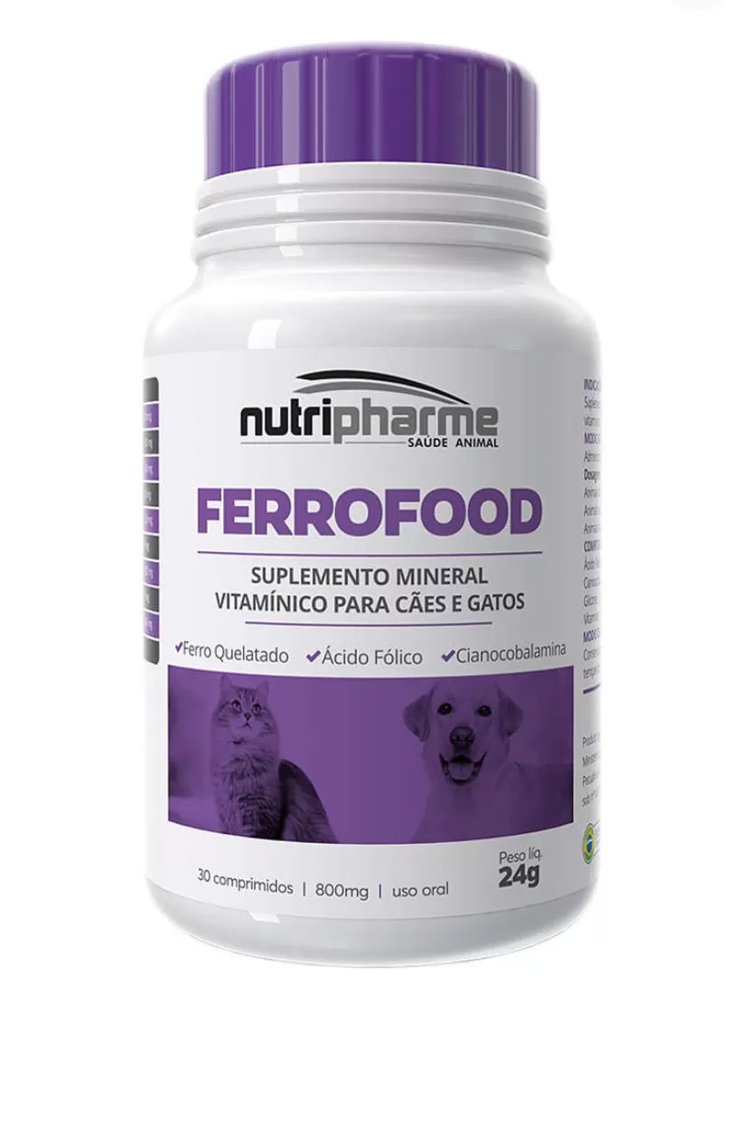 Ferrofood é um suplemento mineral vitamínico indicado para cães e gatos de todas as idades, desenvolvido para auxiliar na reposição de nutrientes essenciais, especialmente em casos de deficiência nutricional e anemia. Sua fórmula contém ferro de alta biodisponibilidade associado a vitaminas e minerais que contribuem para o equilíbrio do organismo.