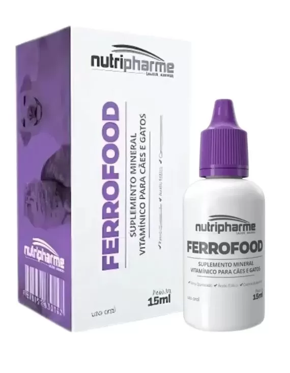 Ferrofood 15 ml é um suplemento mineral vitamínico em forma líquida, indicado para cães e gatos de todas as idades. Sua fórmula contém ferro de alta biodisponibilidade associado a vitaminas e minerais essenciais, auxiliando na recuperação nutricional e no equilíbrio do organismo.