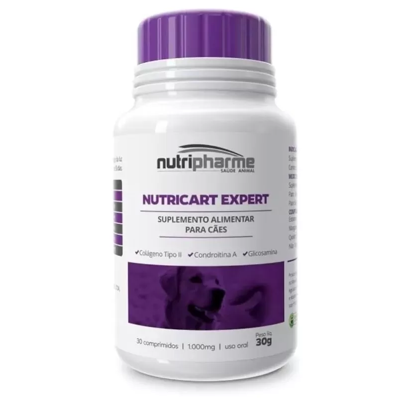 Nutricart Expert é um suplemento alimentar indicado para cães de todas as idades, desenvolvido para auxiliar na saúde das articulações, mobilidade e qualidade de vida. Sua fórmula avançada combina condroitina, glicosamina e colágeno tipo II não desnaturado, componentes essenciais para a manutenção das cartilagens.