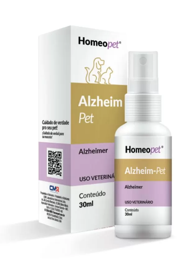 O Alzheim Pet é um medicamento homeopático indicado para cães e gatos, desenvolvido para auxiliar no tratamento de distúrbios cognitivos relacionados ao envelhecimento, promovendo mais qualidade de vida e bem-estar aos pets idosos.