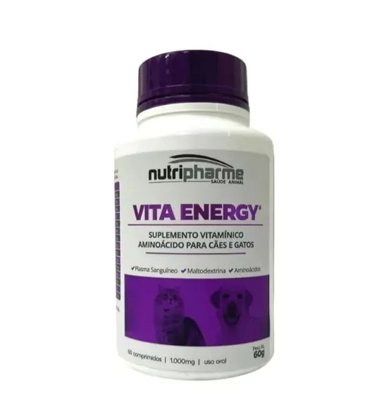 O VITA ENERGY 60 COMPRIMIDOS é um suplemento alimentar desenvolvido para auxiliar na manutenção da energia, vitalidade e bem-estar dos animais. Sua fórmula oferece suporte nutricional essencial, contribuindo para melhor desempenho físico, disposição e equilíbrio do organismo em diferentes fases da vida.