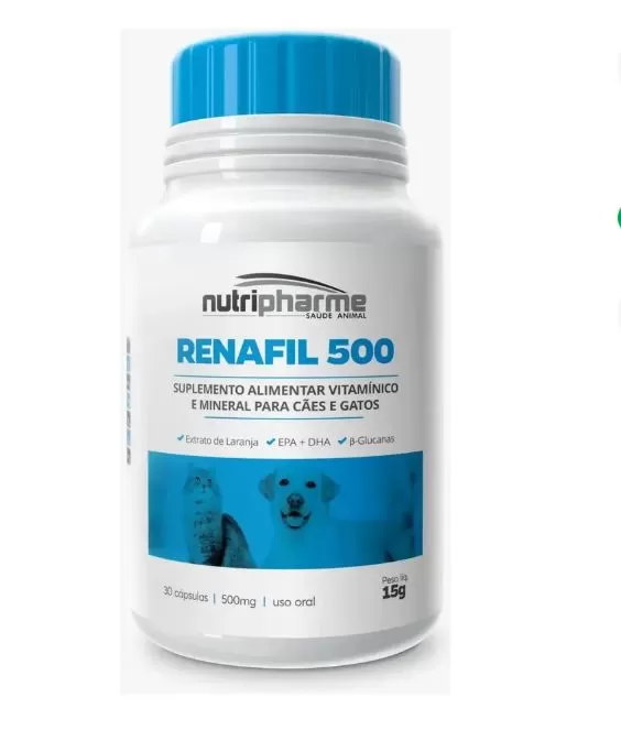 O RENAFIL 500 é um suplemento nutricional desenvolvido para auxiliar no suporte da função renal dos animais, contribuindo para o equilíbrio do organismo e para a manutenção da saúde dos rins.