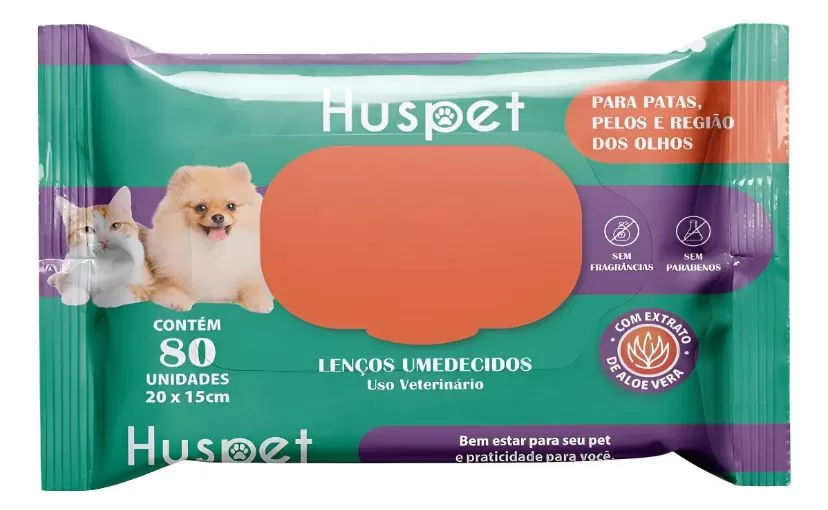 Os lenços Huspet são desenvolvidos para limpeza diária, sendo seguros e suaves para a pele dos pets, inclusive em áreas sensíveis.