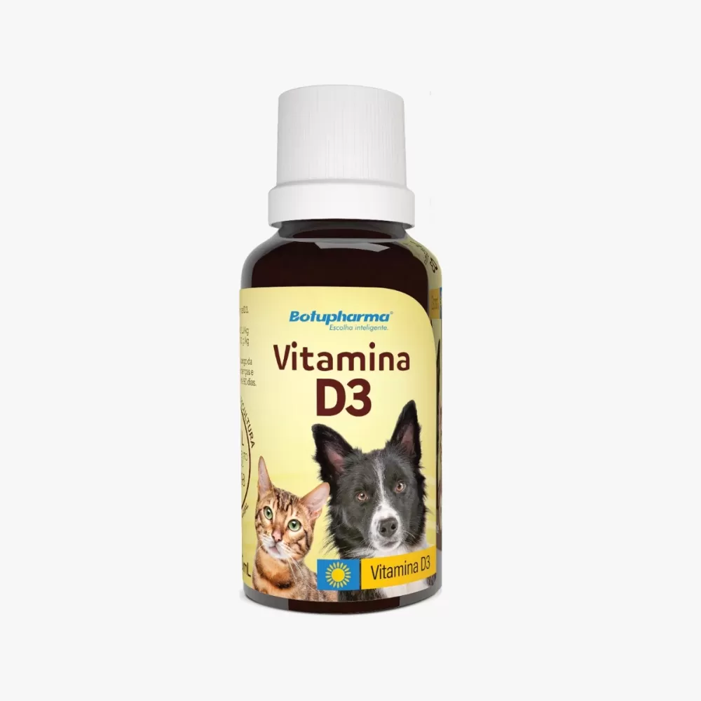 A Vitamina D3 Botupharma é um suplemento veterinário para cães e gatos, utilizado para corrigir ou prevenir deficiência de vitamina D, essencial para o metabolismo do cálcio e saúde óssea.