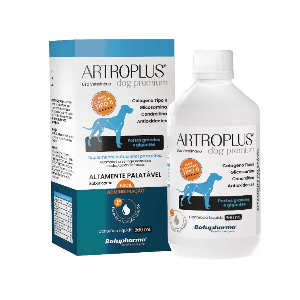 O Artroplus Dog 360 mL é um suplemento veterinário completo para suporte articular em cães, indicado para melhorar mobilidade, reduzir desgaste e manter a saúde das articulações