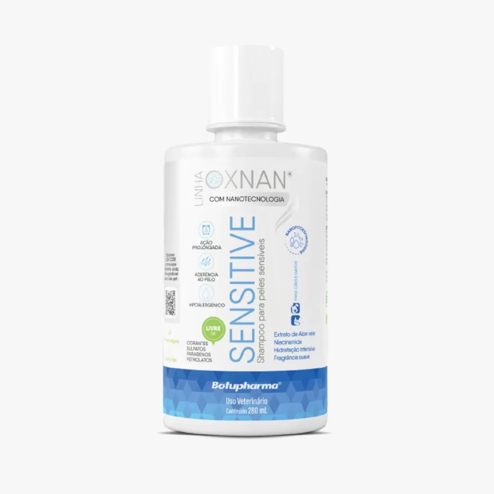 O Oxnan Sensitive 280 mL é um shampoo veterinário indicado para cães e gatos com pele sensível, proporcionando limpeza suave sem agredir a pele.