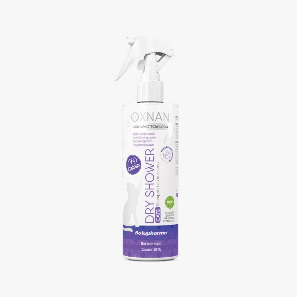 O Oxnan Dry Shower Cat 180 mL é um shampoo a seco para gatos, desenvolvido para higienizar sem necessidade de banho com água — perfeito para evitar estresse nos felinos.