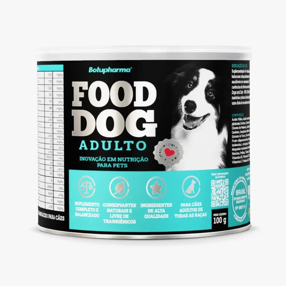 O Food Dog Adulto 100 g da Botupharma não é ração, e sim um suplemento completo para ser usado junto com alimentação caseira de cães.