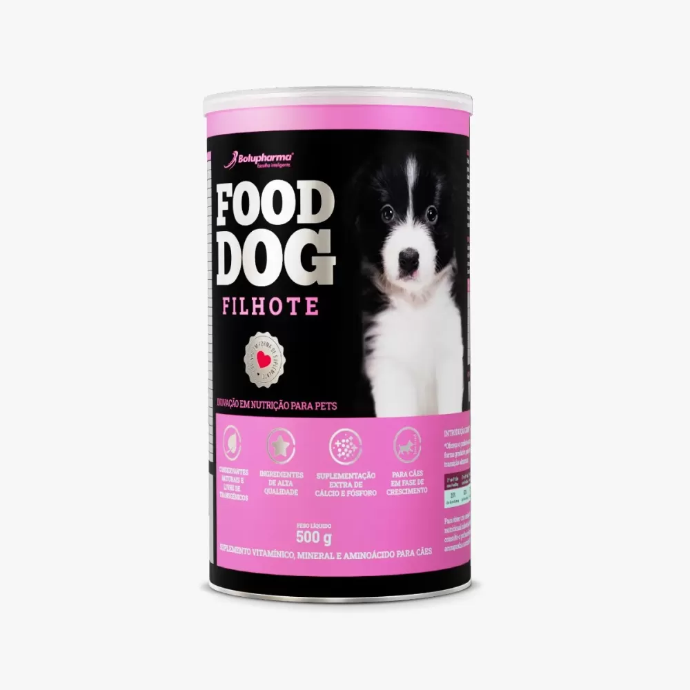 O Food Dog Filhote 500 g da Botupharma é um suplemento nutricional desenvolvido especialmente para cães em fase de crescimento, principalmente aqueles que recebem alimentação natural (caseira).