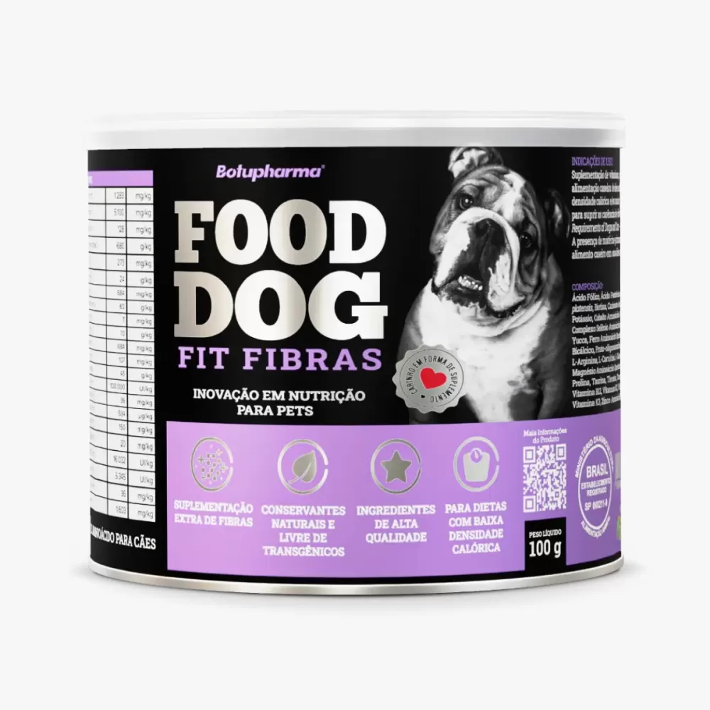 O Food Dog Fit Fibras é um suplemento indicado para cães adultos que fazem alimentação natural com baixa densidade calórica ou que precisam de maior aporte de fibras na dieta.